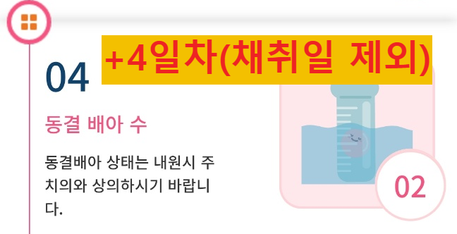 4일차에 봤을때 동결배아수 2개 떠있는걸 보고